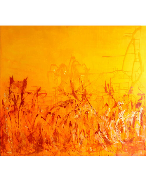 Sommerens varme ånd møder forårets friske pust. Farverne smelter sammen i en levende strøm af energi. Her forenes årstidernes sjæle i et vibrerende møde. En dans af briser, bløde og kraftfulde på samme tid. Et maleri af overgange – af livets evige bevægelse.